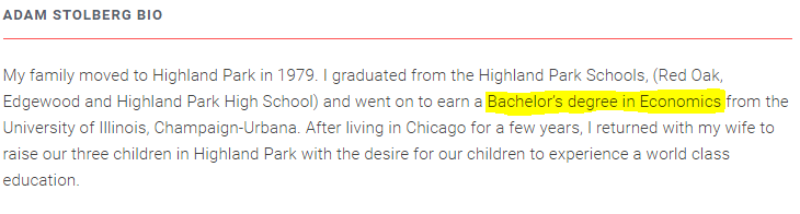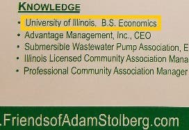 Despite what it says on his campaign literature, including postcards and his website, the Highland Park City Council candidate did not major in Economics at the University of Illinois, Urbana.