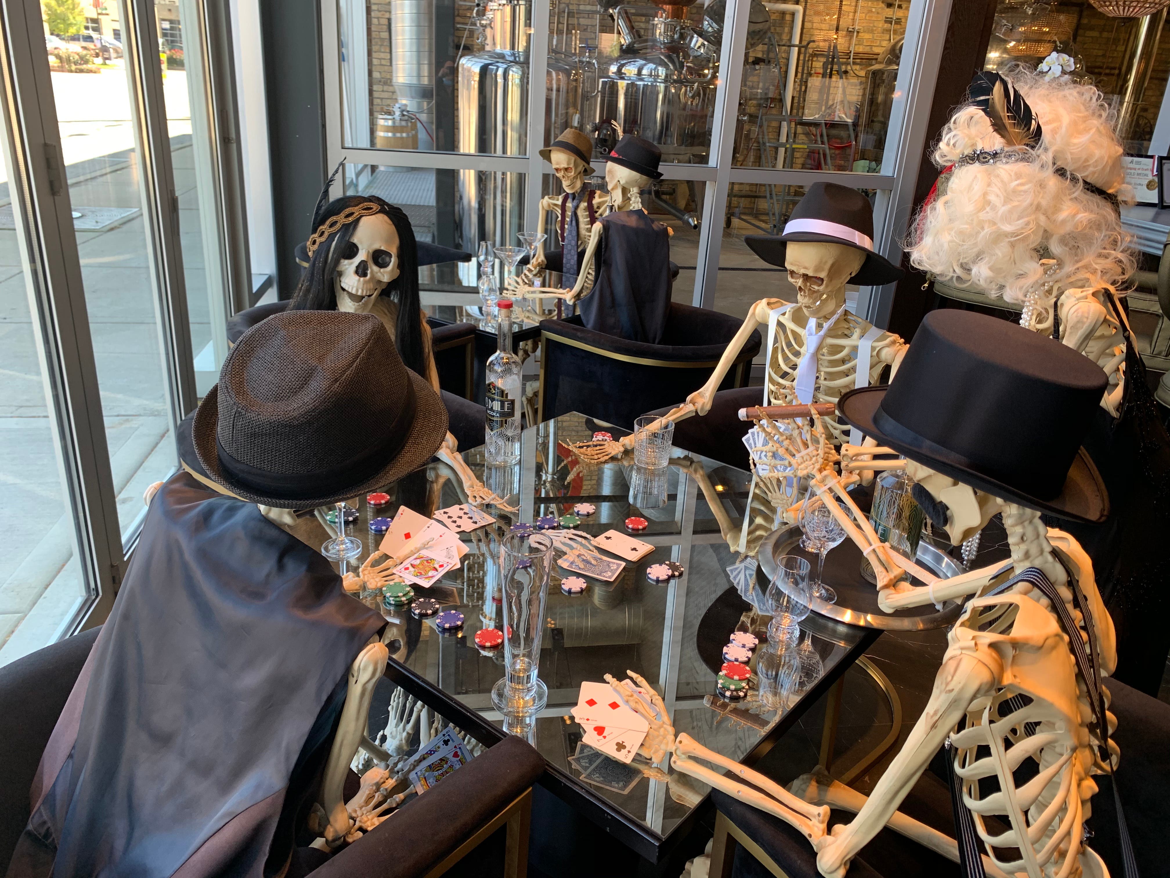 With the cancellation of the annual Highwood Pumpkin Festival, its organizers have instead pivoted to the city's first "Invasion of Skeletons." Hundreds of skeletons have been arranged throughout town, with the city providing skeletons to local businesses in an effort to encourage people to visit and patronize local establishments.