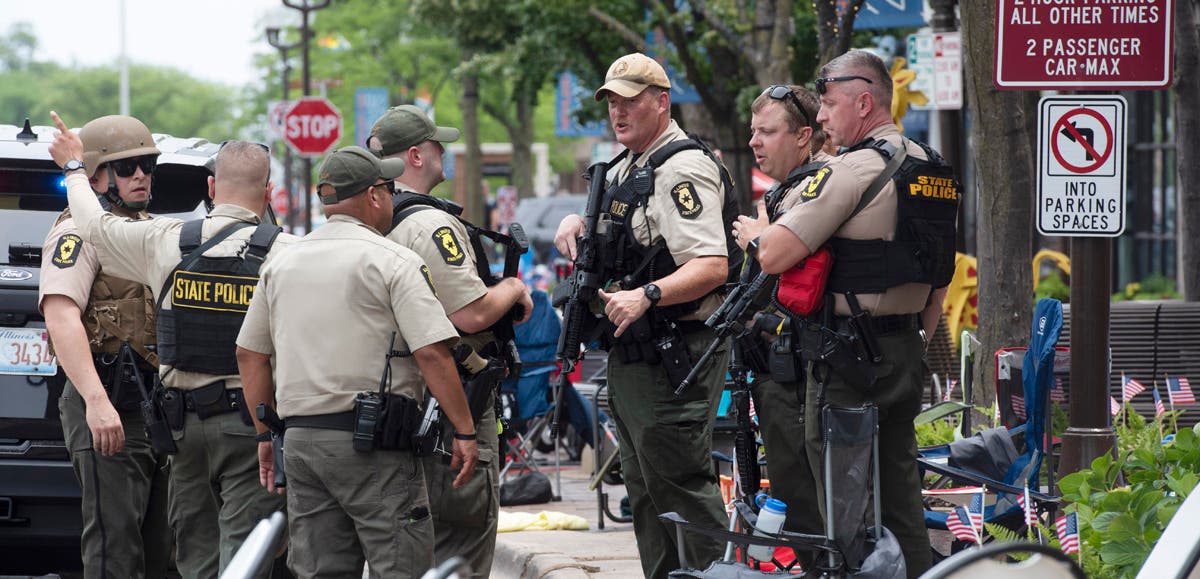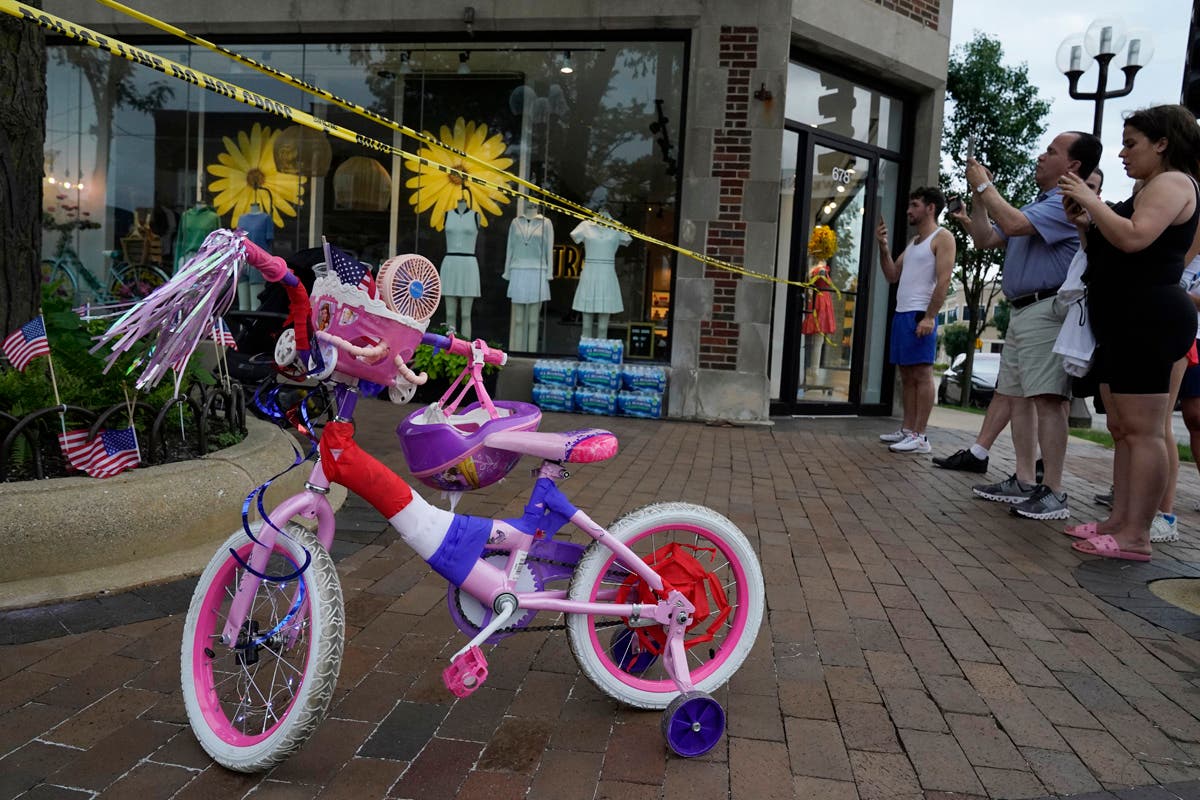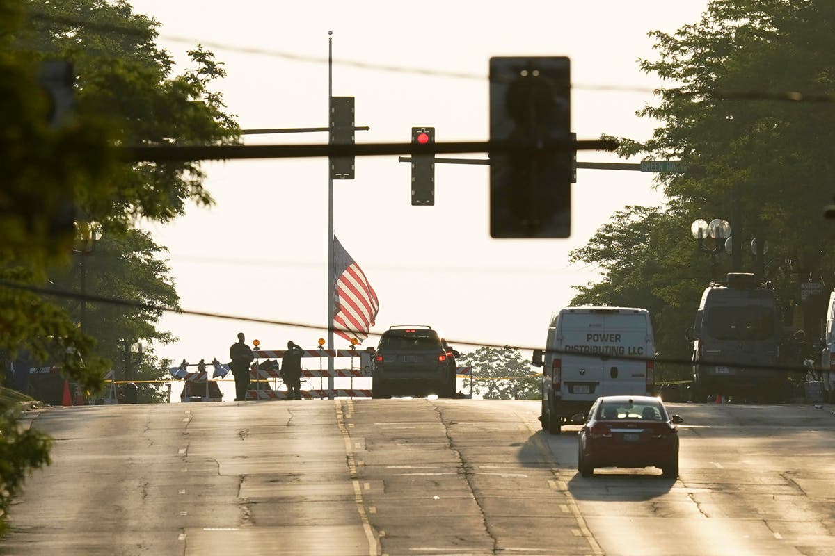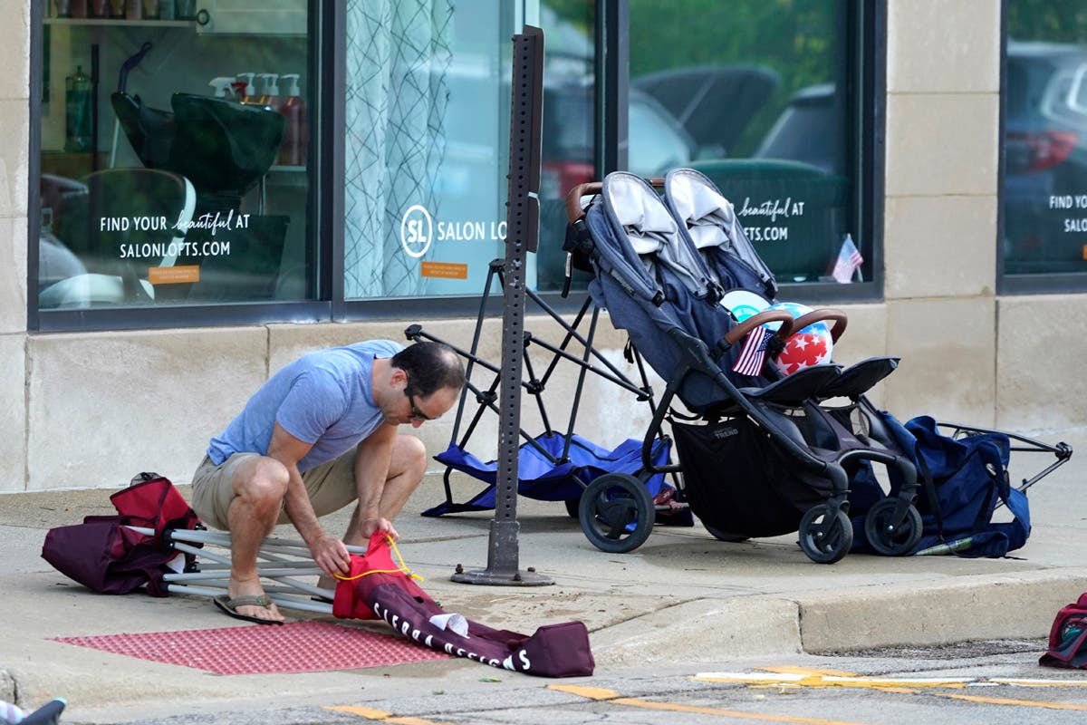 Law enforcement search in a building after a mass shooting at the Highland Park Fourth of July parade in downtown Highland Park, Ill., a Chicago suburb, on Monday, July 4, 2022. (AP Photo/Nam Y. Huh)A Lake Forest police officer walks down Central Ave in Highland Park on Monday, after a shooter opened fire on the northern suburb's Fourth of July parade. (Brian Cassella/Chicago Tribune via AP)This undated handout photo provided by the City of Highland Park Police Department shows Robert (Bobby) E. Crimo III. Highland Park Police Chief Lou Jogmen said Monday, July 4, 2022, that police identified 22-year-old Crimo as a person of interest in an Independence Day parade shooting in suburban Chicago. (City of Highland Park Police Department via AP)A woman wipes tears after a mass shooting at the Highland Park Fourth of July parade in Highland Park on Monday. (AP Photo/Nam Y. Huh)People check their belongings after the shooting. (AP Photo/Nam Y. Huh) Law enforcement search the area. (AP Photo/Nam Y. Huh)A man carries his belongings after the shooting occurred. (AP Photo/Nam Y. Huh)A woman looks outside from her home at the chaos below. (AP Photo/Nam Y. Huh)Law enforcement conduct a search. (AP Photo/Nam Y. Huh)American flags are pictured where the shooting took place. (AP Photo/Nam Y. Huh)Officers from the Illinois State Police confer near the scene of the hooting involving multiple victims. (Joe Lewnard/Daily Herald via AP)People take photos of the area where the shooting occurred. (AP Photo/Nam Y. Huh)Law enforcement conduct a search of the grounds. (AP Photo/Nam Y. Huh)People are escorted away from the scene. (John Starks/Daily Herald via AP)A stretcher is seen after behind the taped-off area. (AP Photo/Nam Y. Huh)Law enforcement search after near the shooting. (AP Photo/Nam Y. Huh)Sen. Tammy Duckworth, right, D-Ill., speaks as Illinois Gov. J.B. Pritzker listens at a news conference at Highland Park Fire Department Station 33, after the mass shooting. (AP Photo/Nam Y. Huh)A police officer holds up police tape at the scene. (AP Photo/Nam Y. Huh)People outside the Highland Park police department after Robert E. Crime III was taken into custody on Monday. (AP Photo/Nam Y. Huh)Two police officers stand their post, the day after a deadly mass shooting on the west side of Highland Park on Tuesday, as the American flag flies at half-staff on the east side. (AP Photo/Charles Rex Arbogast)Elliot Lieberman gathers his folding chairs on Tuesday, one day after a mass shooting. (AP Photo/Charles Rex Arbogast)A Metra commuter train passes through the Highland Park, Ill. train station, without making a stop, one day after a mass shooting in the suburban Chicago town Tuesday. (AP Photo/Charles Rex Arbogast)The Associated Press contributed to this post.
