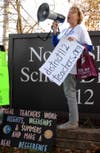 Earlier: Park's elementary and middle school teachers rallied on Monday afternoon before the District 112 School Board and teachers' union met for another bargaining session.