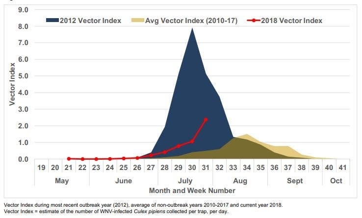 "These factors indicate that the risk for human West Nile virus infections is elevated and will likely remain elevated through the remainder of August," Clinton said in a release. "Everyone really needs to adopt personal protection behaviors.”