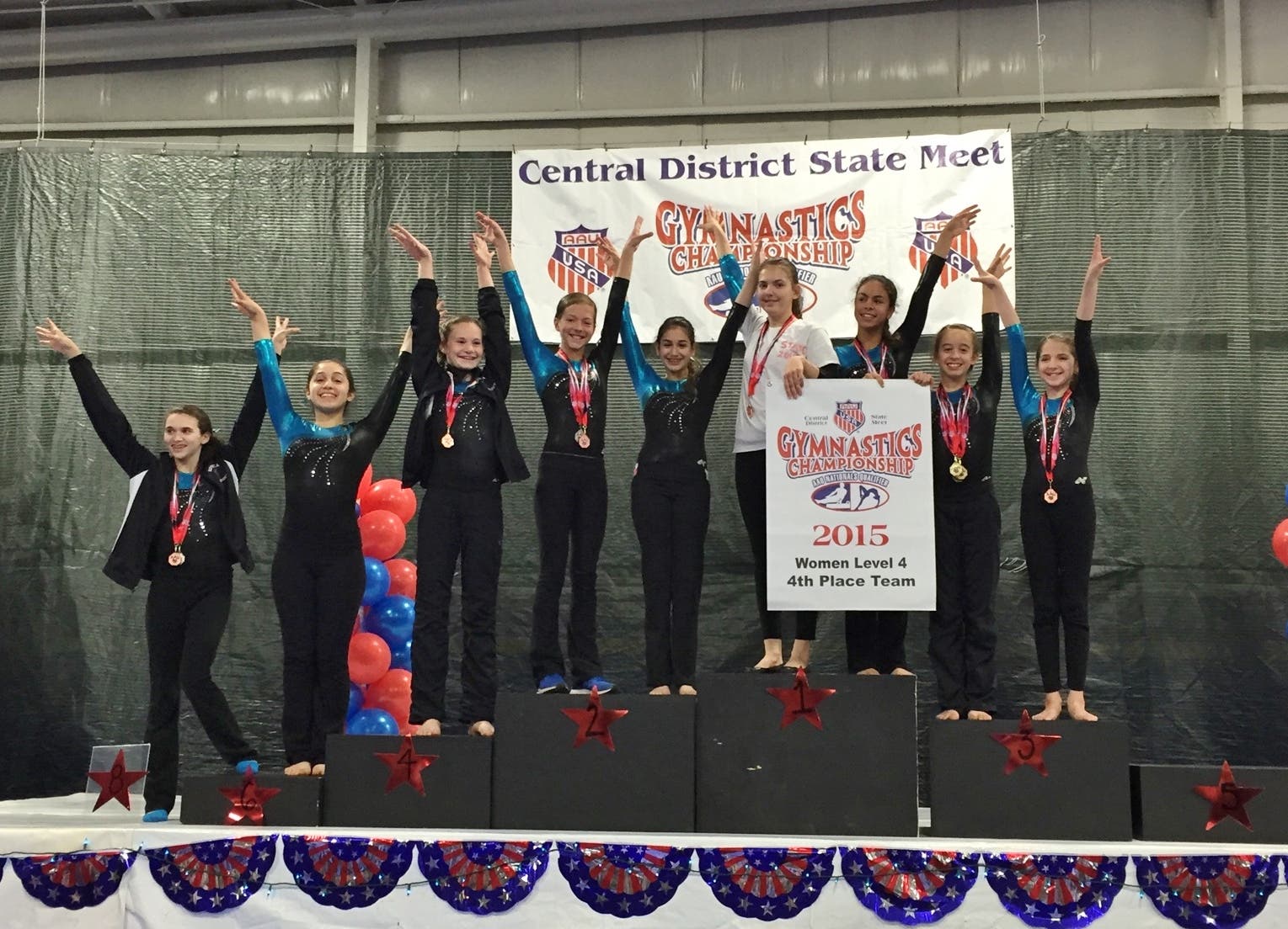 The North Suburban YMCA's Gymnastics Team closed its 2014-15 season at the AAU Central District State Meet in Loves Park, Illinois on May 2