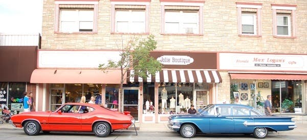 PHOTO: Classic cars line Main Street in downtown Downers Grove on a recent Friday night. | Lindsay Prossnitz.