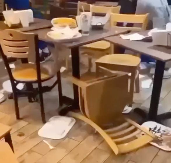 Taco Grill in Westmont was a mess early Sunday morning after youths fought in the dining room. (Video screenshot courtesy of resident)