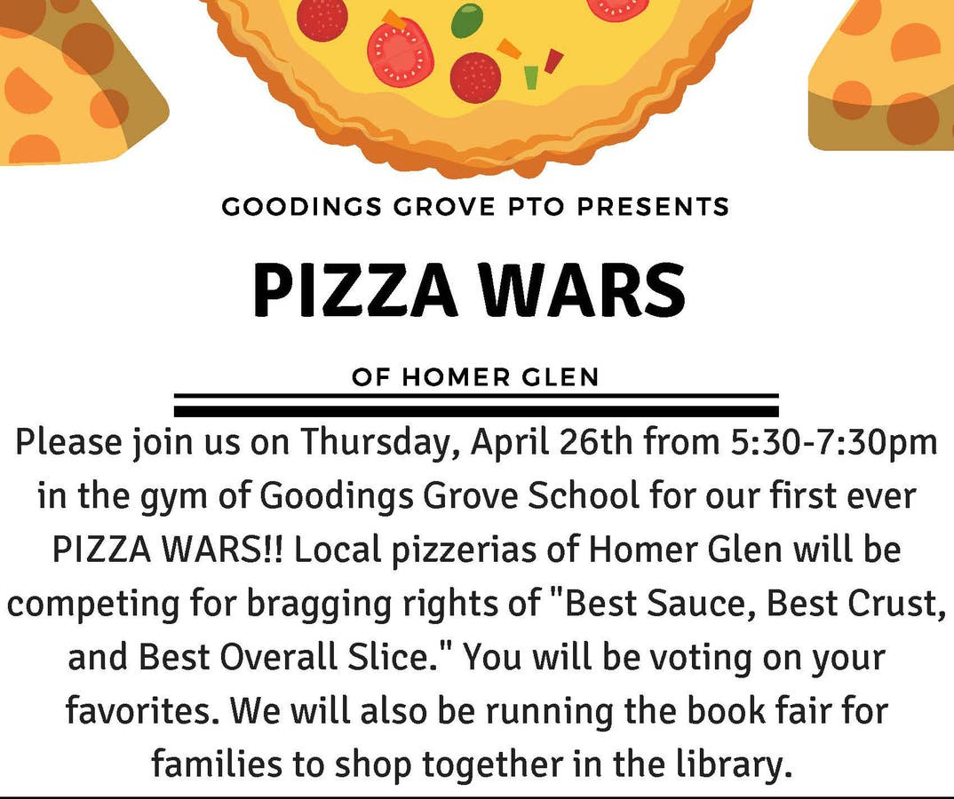 Who makes the best pizza in our area? You can help decide by participating in Pizza Wars at Goodings Grove School on April 26.