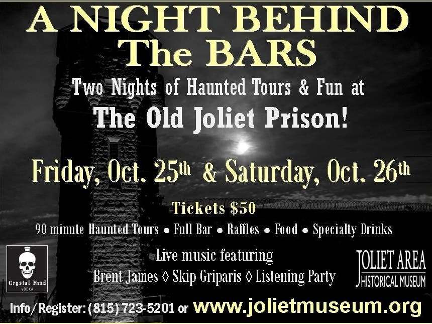 "A Night Behind The Bars" haunted tours, live music, & more at The Old Joliet Prison on Friday, Oct. 25th & Saturday, Oct. 26th!