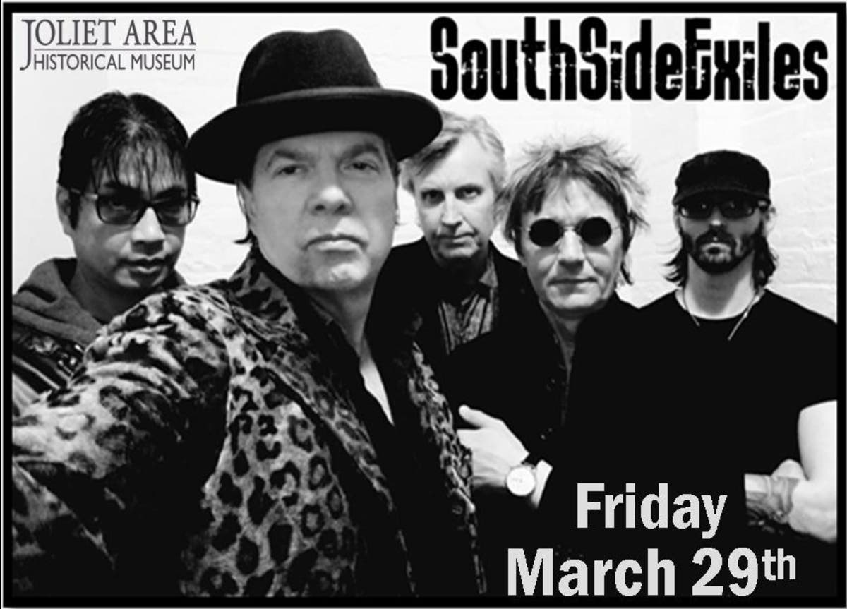 The SOUTH SIDE EXILES live in the Joliet Museum's Indoor Auditorium Theater on Friday, March 29th at 7:30pm!