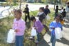 St. Joseph School preschool students fill bags with treasures of Fall.
