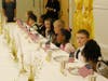 Their journey ended in Washington D.C. with a celebratory “State Dinner”. The students and teachers dressed in their very best formal attire and practiced manners worthy of the White House. They dined on Delanoe’s pizza, apple slices, fruit punch and cream puffs for dessert and used White House “china” they created themselves.
