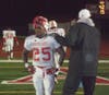 The Redhawks’ Nick Thomas started things off by taking the opening kickoff 76 yards for a quick 7-0 lead. H-F (8-4) did counter with a long drive capped by Williams’ 1-yard run to draw even, but the Redhawks defense took over from there, forcing a trio of first-half turnovers, each of which led to a touchdown and a surprising 35-7 Redhawks lead at the half.