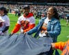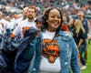 In partnership with Advocate Health Care, the Chicago Bears invited Jones, a 30-year-old Dolton resident, to help unfurl the Bear Down flag and participate in pregame activities at Soldier Field. She was joined on the field by her twin brother, Demetrie, before returning to the stands to watch the Bears win against the Texans (23 - 20).