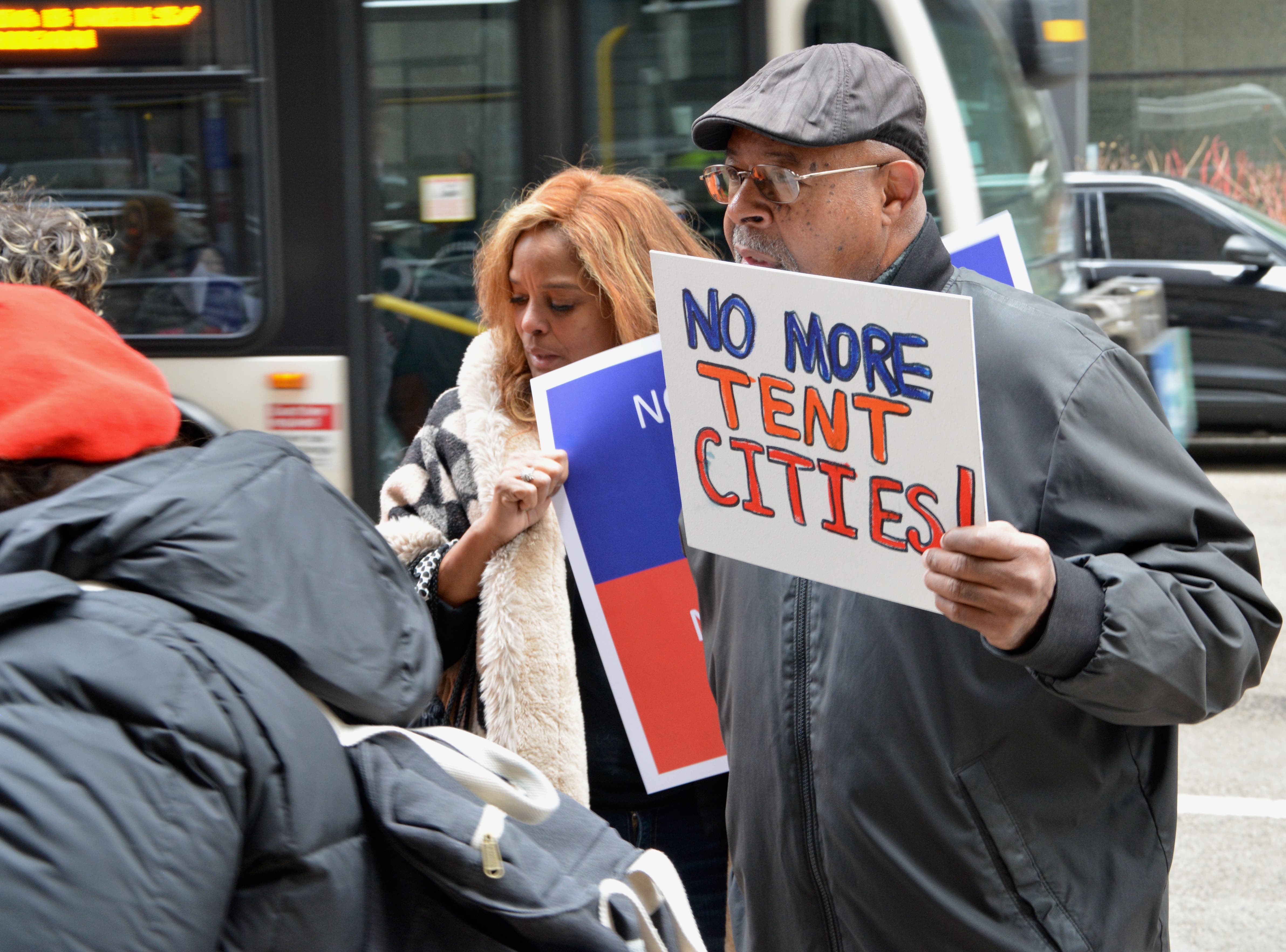 “We say to the government, ‘If you want to come into Chicago and you want to come and you want to come in and do a big convention where millions of dollars are spent on parties, and on lobbyists and on hotels and on restaurants, well come also with billions of dollars and a commitment to do something with homelessness in America,’” Pfleger said, standing in front of the Union League on Feb. 15.
