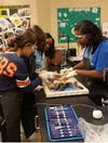 Pictured are Hillcrest students attending the National Health Science University field school trip; Hillcrest alum Jasmine Foster, Brenetta Allison and Dr. Weber at National Health Sciences; and Arminda Cako, Karly Kos, and Courtney Collier demonstrate proper methods for cat dissection during honors anatomy lab.