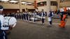 The Hillcrest Marching Hawks were the featured guest performers for the Governor’s State University fall sports pep rally conducted by GSU Student Life. The Marching Hawks led the way with a variety of musical performances that got the crowd excited, followed by the GSU cheerleaders with their team spirited chants. Introductions for all seven GSU teams were announced as they ran through a tunnel of cheering fans, poms, and applause. The Hawks performed exciting popular tunes for over 30 thirty minutes to contribute to the thrilling atmosphere.