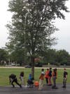 Hillcrest High School’s Advanced Placement Physics class is taking advantage of mild temperatures as they start off the school year strong. The class, taught by Mr. Mirko Polyak, was reviewing the concepts of dependent and independent variables and students are designing their own experiments. In this exercise, students are exploring the results of varying air pressure on altitude of water rockets. Entirely pupil directed, the students have had to determine their own processes for measuring and recording data. Some of the students discovered that sometimes they might get a little wet! lol