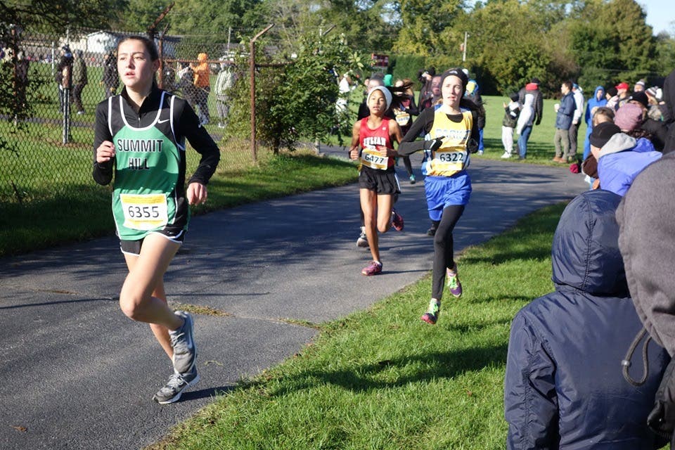 In the girls race, the Parker girls placed 3rd to earn their 4th straight trip to the IESA State Meet in Normal, Illinois. Naima Douglas (6317 - below) was the Sectional Champion, running two miles in 12:24. Grace Mullin (6322- below) was also All-Sectional running 12:56.