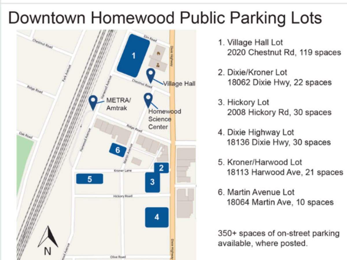 HOMEWOOD, IL - The village of Homewood has outlined several parking options for residents and visitors planning to attend Friday morning's WGN Morning News live broadcast from Martin Avenue Square. The parking lot at Homewood Village Hall will be used by WGN, but there are at least six other lots in the immediate area that will be available for those looking to attend.