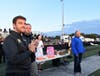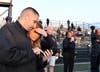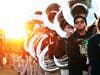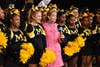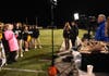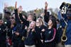As the award winning Marian Catholic band performed Hey Baby, Tracy could be seen singing along with the students. The students and band members showed three formations that could be seen from the helicopter flying above the school’s football field.