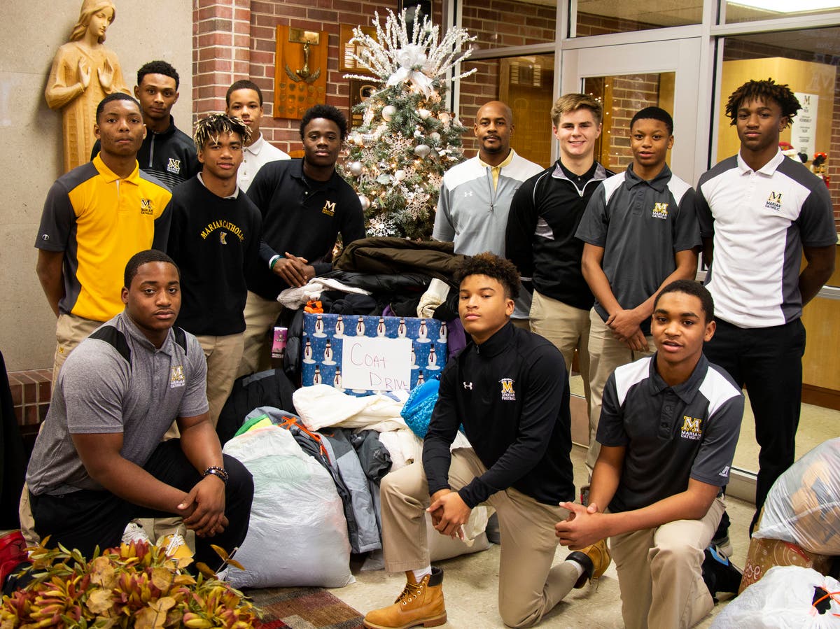 CHICAGO HEIGHTS, IL — Members of the Marian Catholic High School football team accounted for the bulk of the donations that came in as part of the annual coat drive at the Ashland Dental Center in Chicago Heights. The gently used coats will be sent to an area foster home, Blanca, a receptionist at the Ashland Dental Center who came up with the idea to hold the annual drive two winters ago, said. The drive helps a different organization every year.