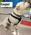 Casper suffers from the bully breed reputation……and has received very few inquiries…. Casper is well behaved, good with dogs, loves people and is an overall clown. Do not miss out on this wonderful dog simply because he is part Bully Breed.