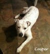 Casper understands basic commands: sit ,walk, stay ,leave it and his name. He will take food gently from your hand, gives kisses for free and will follows you throughout the house. He rides well in a car and will make someone a wonderful, loyal companion. Casper does not like to be crated but since he is so well behaved his foster mom has not had to crate him.