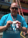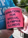 Nick Grandenitti, 24, of Huntley, sat in a lawn chair alongside Schwartz with a gold medal around his neck. While Special Olympian James Williams, of Lake in the Hills, stood on the ground holding a donation can along with fellow athletes Mike Aicher, of Algonquin and Coral Brady, of Cary.