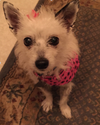 from our Home in the SouthWinds Subdivision. She has Long Wiry White hair with black spots on her skin. She was wearing a Pink invisible fence collar and a Blue nylon collar with a McHenry County rabies tag. She is small, weighs 10lbs but is very fast. She is shy of strangers and hard to catch. Food or treats would be the best way to gain her trust.