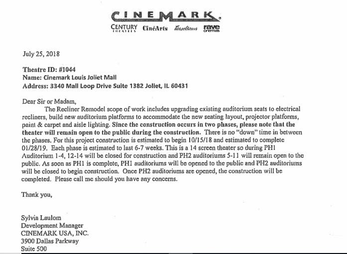 Some of the documents indicate that Cinemark had initially notified the city of Joliet of the upcoming project late last summer. Although he timing was delayed, the project is now well underway.