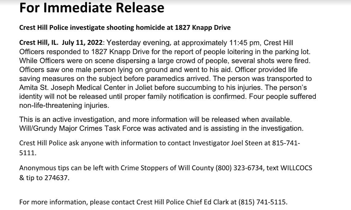1 Dead, 4 Injured In Crest Hill Shooting: Killer Flees Area