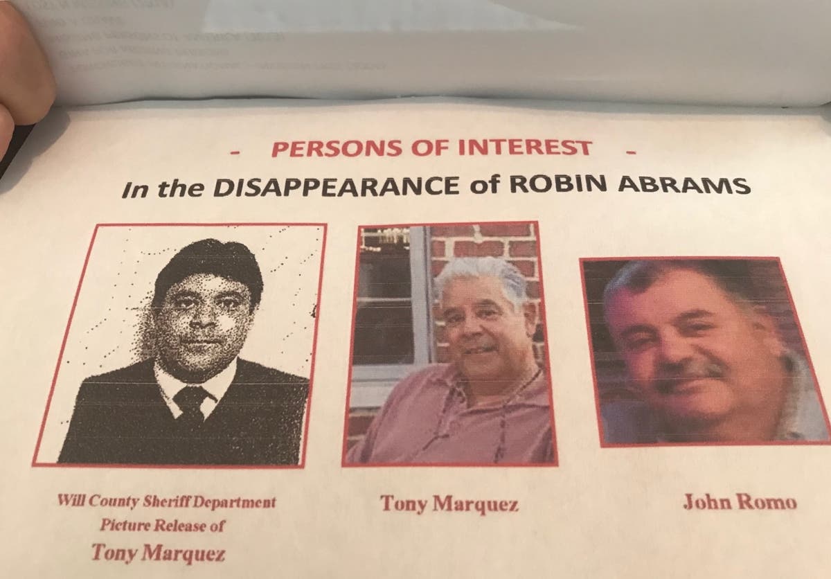 Now, it's been 13 months since a home in Joliet in the 100 block of South Margaret Street, where John Romo, the stepbrother of Marquez, had poured the concrete in the basement, was dug up by FBI agents and the Illinois State Police. The State Police have told the Abrams family that Marquez and his stepbrother are suspects in her disappearance, according to Jody Walsh, the sister of Robin Abrams.