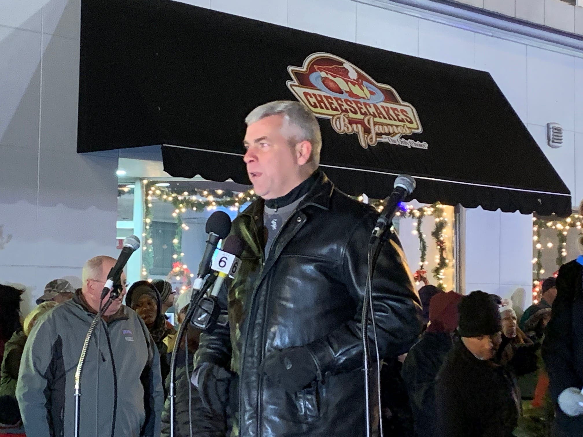"All right, let's countdown, everybody! In five, four, three, two, one, Merry Christmas everybody," the master of ceremonies told the crowd.