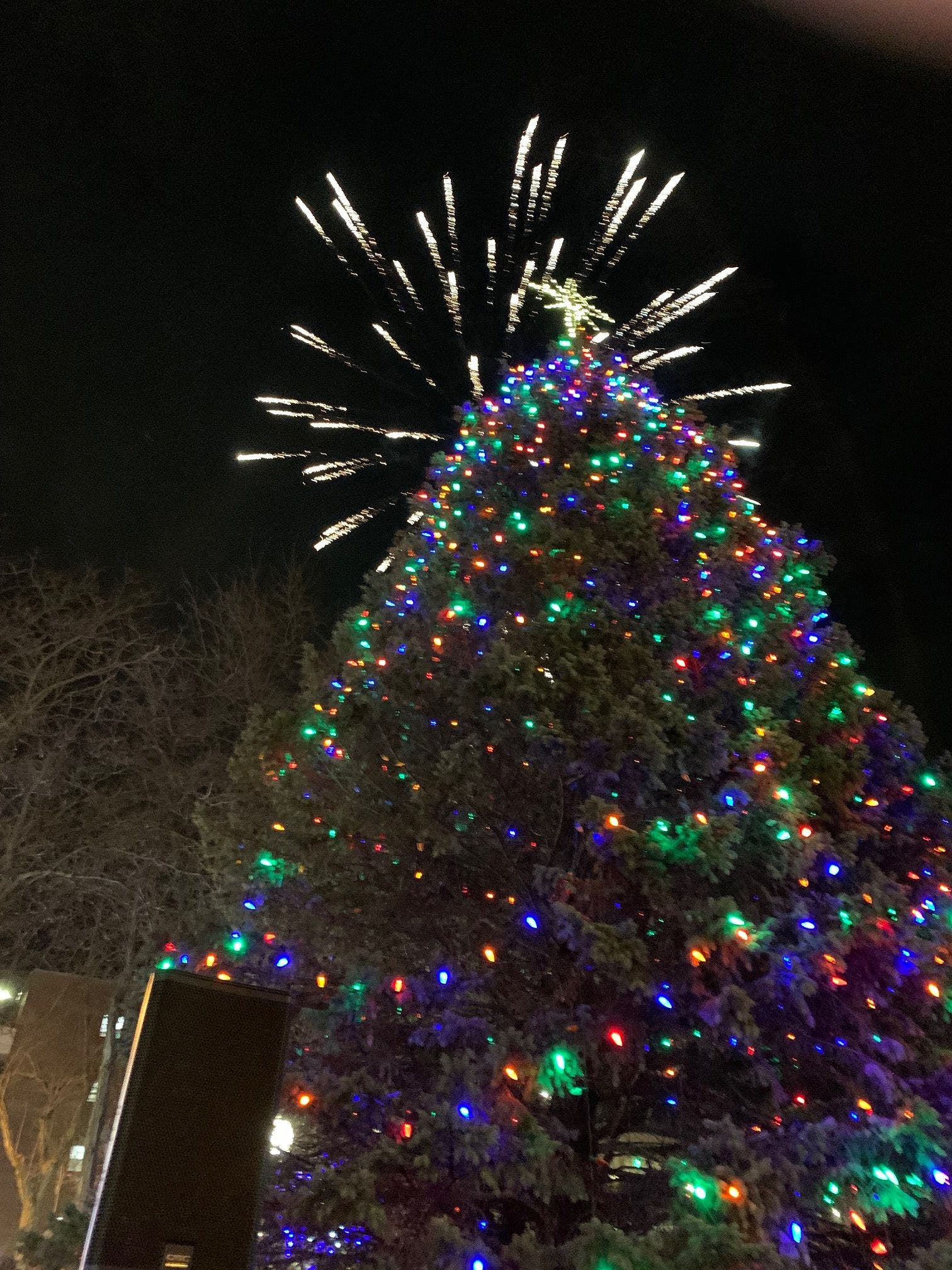 The festivities began around 5:15 p.m. as Mayor Bob O'Dekirk was helped by child Audrey Rodriguez to light the city's giant Christmas tree put up at Van Buren Plaza.
