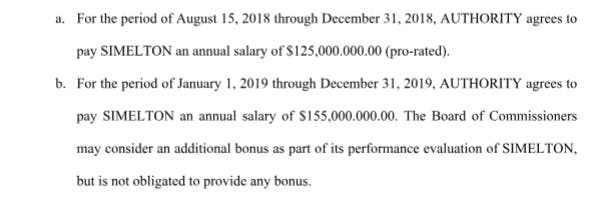 "The board of commissioners may consider an additional bonus as part of its performance evaluation of Simelton, but is not obligated to provide any bonus," the contract reads.