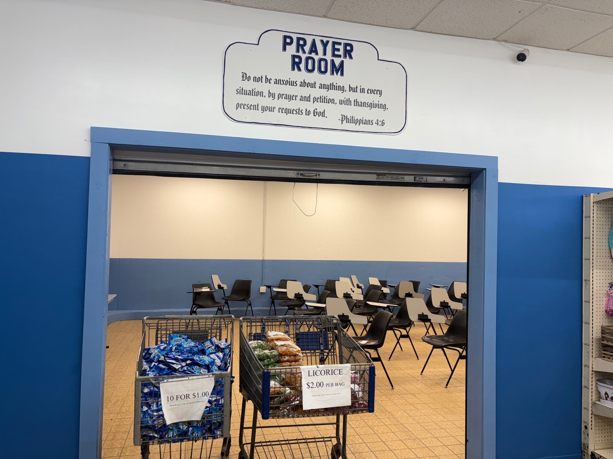 As for its new grocery store, Hands of Hope also has a large Prayer Room in the back of its store where a prayer group meets every morning from 9 to 9:30 a.m.