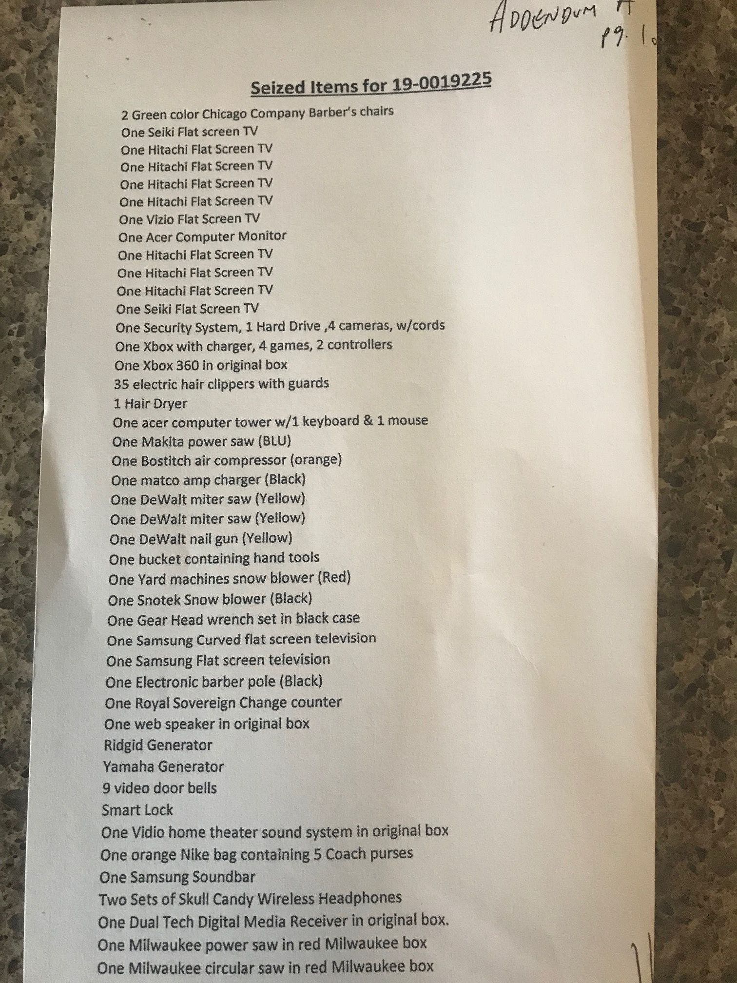 Now, newly filed court documents indicate that Joliet police seized nearly $49,000 in cash from the barbershop, as well as numerous other items, including several Hitachi Flat Screen TVs.