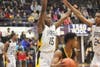 Crawford and Oliver limited Joliet West’s Morris Dunnigan to one shot and two points—those coming on free throws—in the second half of Marian Catholic’s 65-54 victory over the Tigers in a semifinal game Wednesday at the Class 4A Thornton Sectional in Harvey.