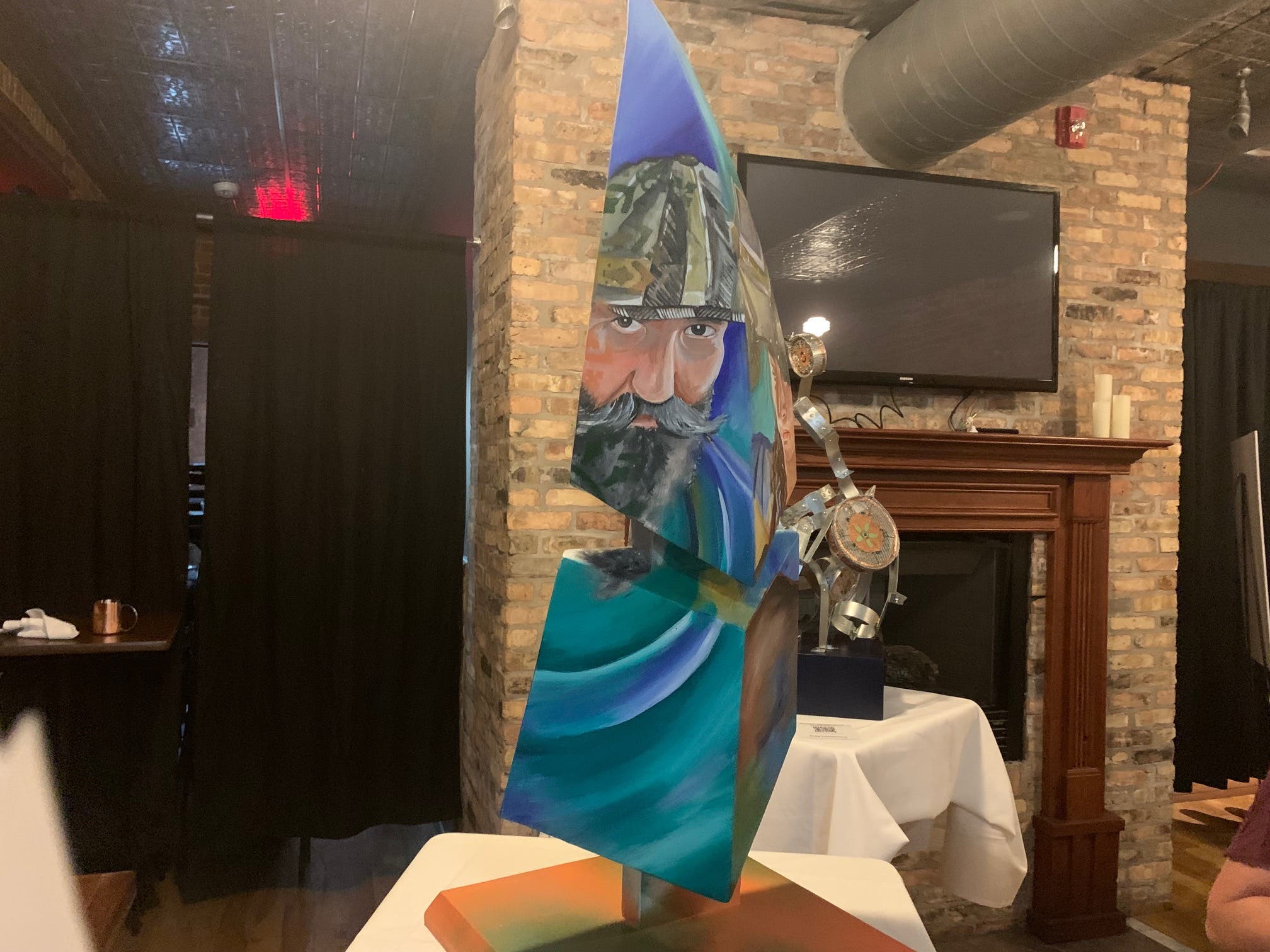 More than 100 people gathered on the second floor of Juliet's Tavern, 205 North Chicago St., to celebrate the talent and to view the work of the five sculptures. The artists who made these pieces were: Aguilar, Kelly Bartels, Dante DiBartolo, Erick "Roho" Garcia and Mary Lynn Maloney.