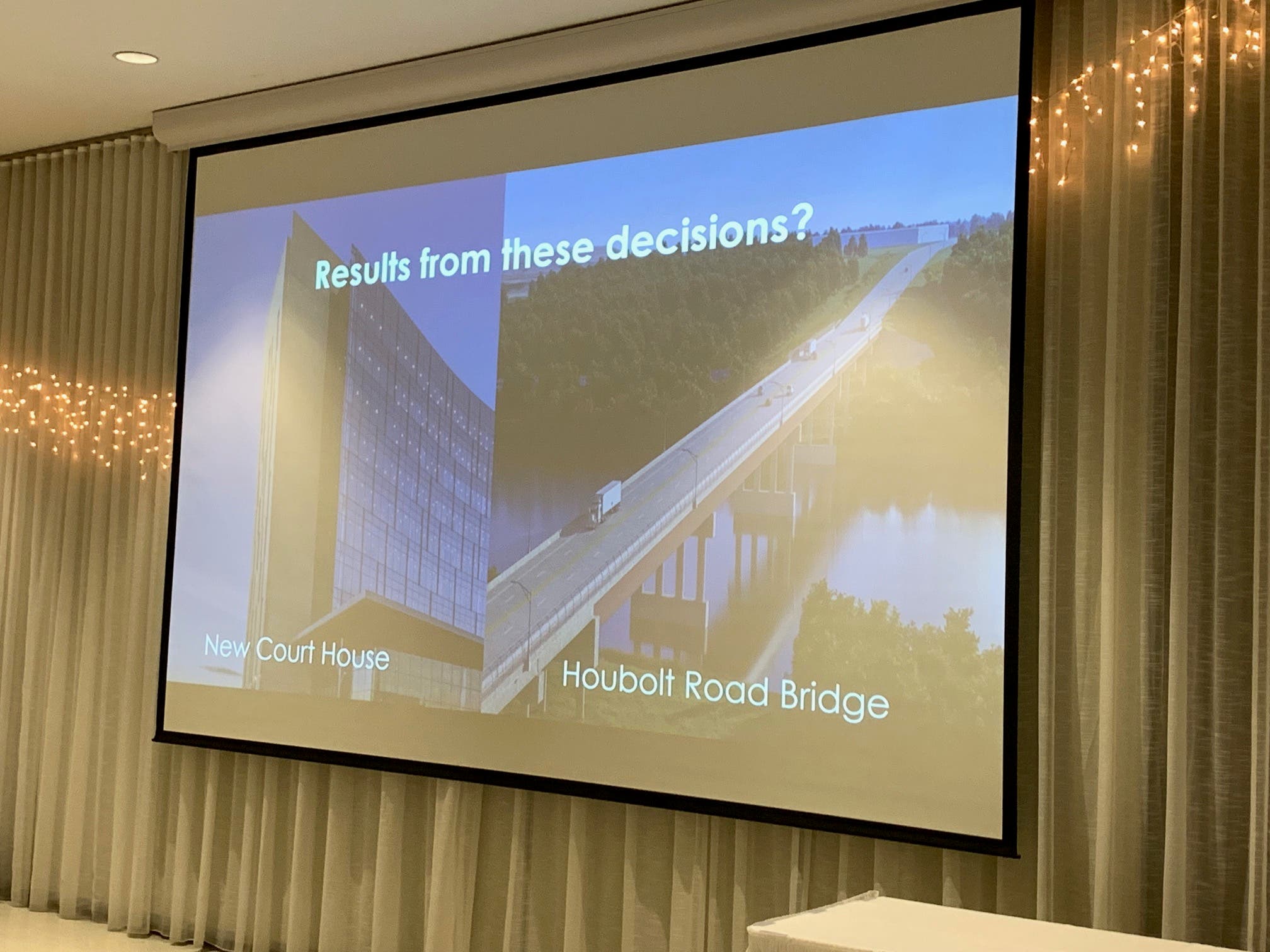 No. 2 Houbolt Road Bridge over the Des Plaines River at Route 6. It's expected to open in a couple of months to divert semi-trailer traffic away from Joliet thoroughfares including South Chicago Street and Briggs Street, O'Dekirk reminded everyone.