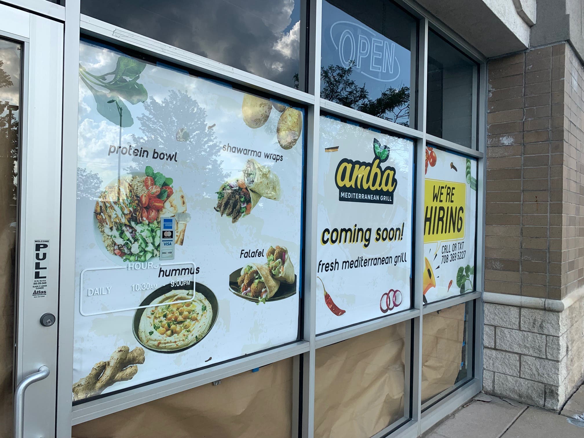 Now, two months after the demise of Grill Island, there are new signs posted in the front window. These signs alert people that Amba Mediterranean Grill will be opening in its place. No date for the grand opening was announced. The sign simply says, "coming soon."