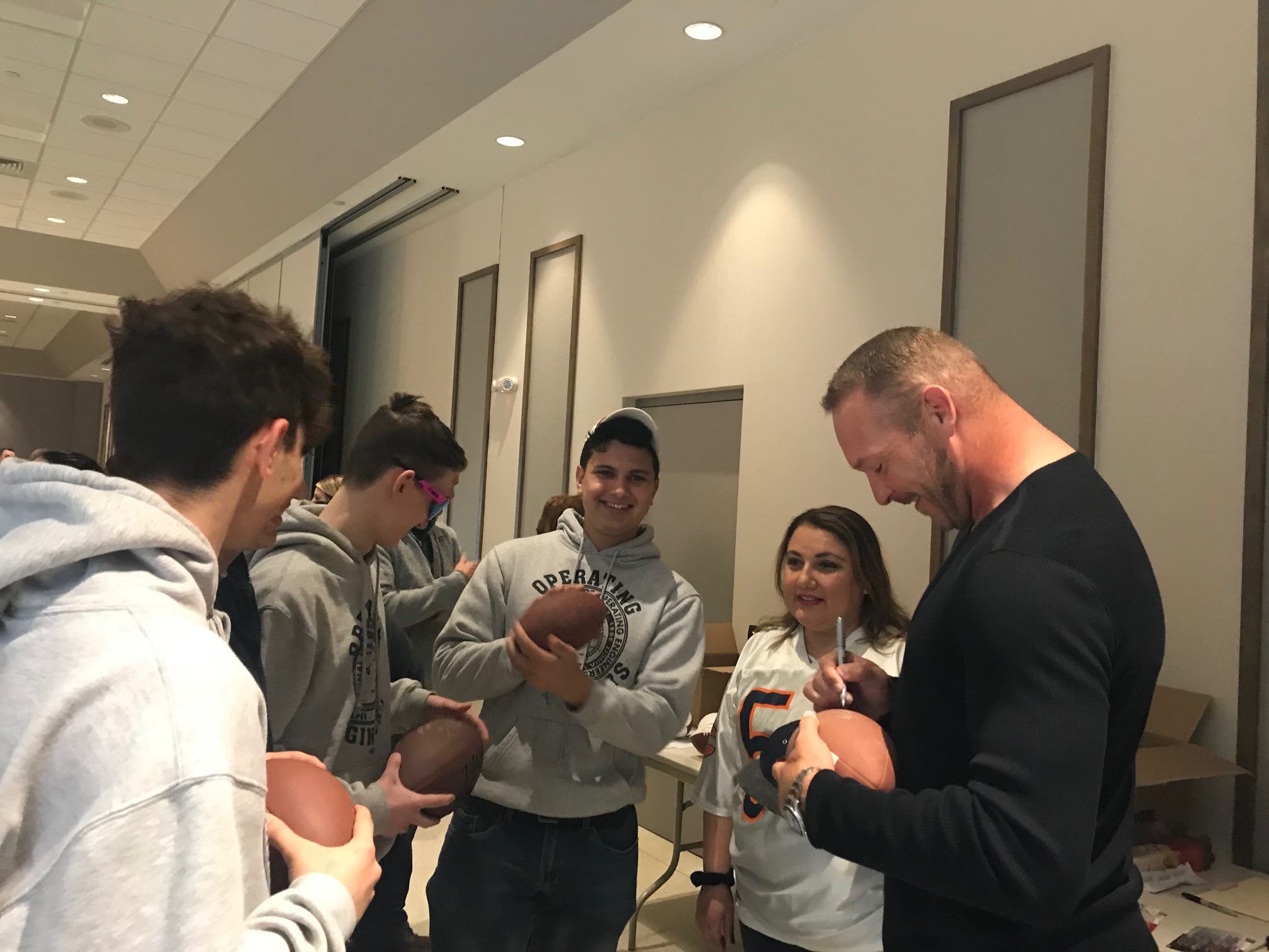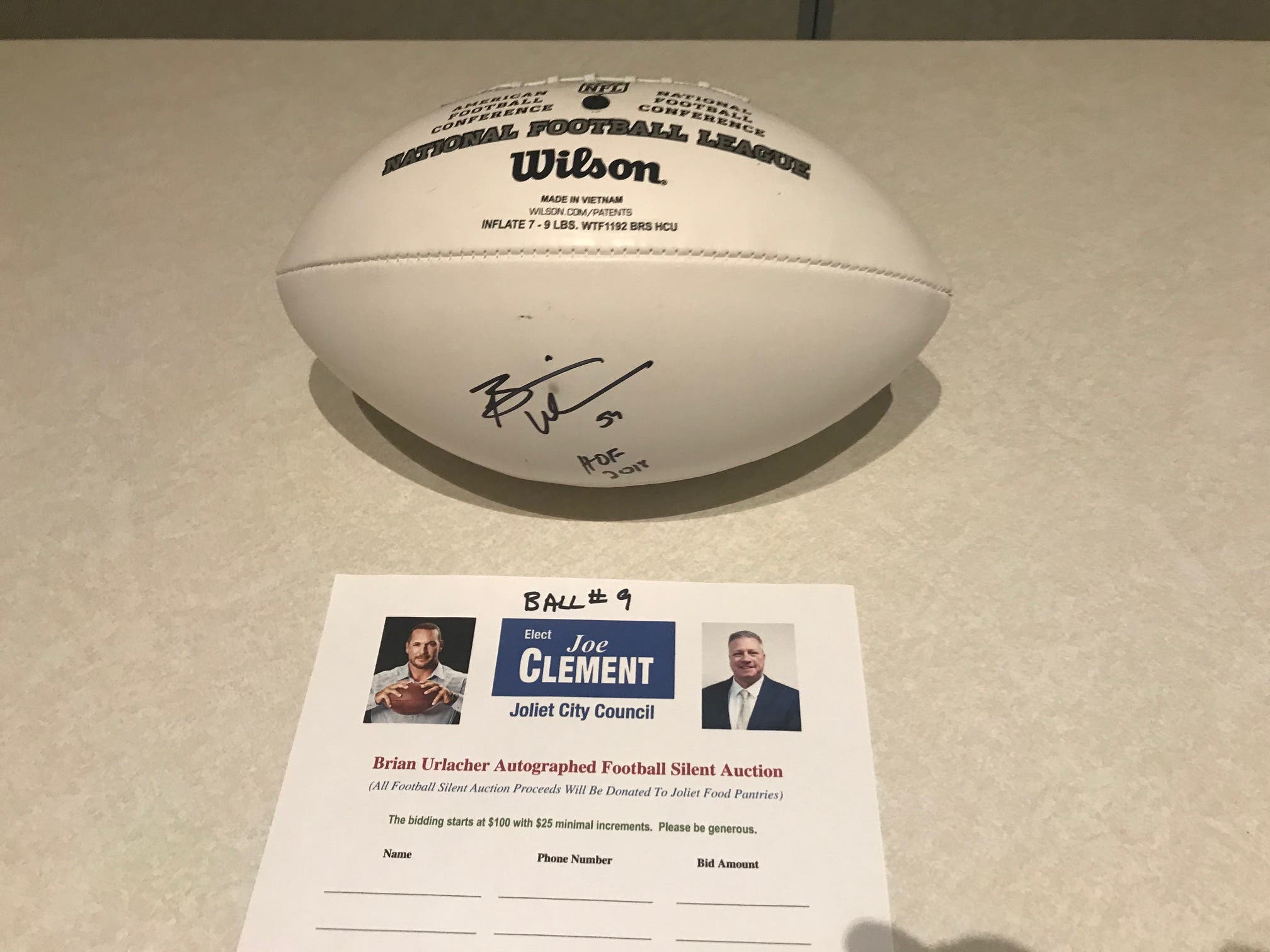 Urlacher said he did not want to pass up the chance to offer his political support for Clement's campaign and sign several footballs and jerseys that were all being auctioned for a dozen Joliet area food pantries and charities at Sunday's event.