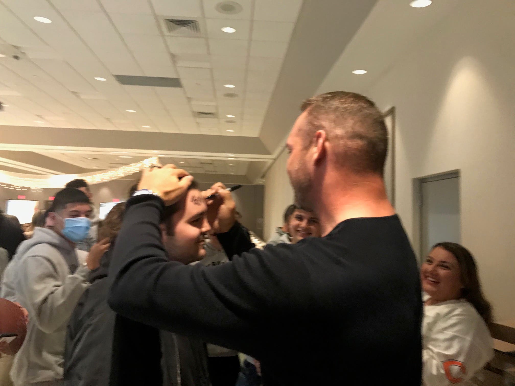 From 12:30 to 1:30 p.m., Urlacher was busy signing autographs and posing for photos with Joliet area Chicago Bears fans.