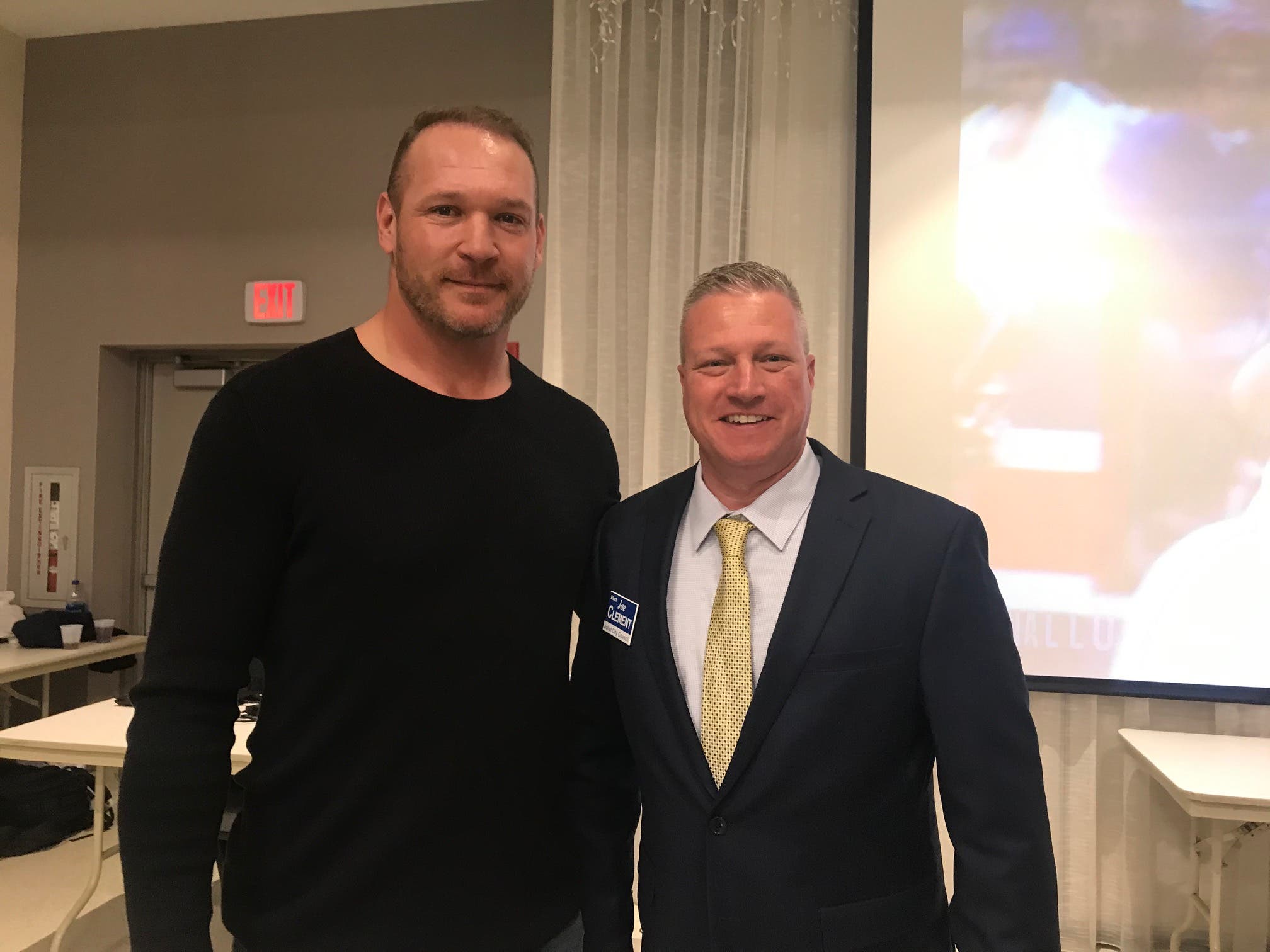 JOLIET, IL — Brian Urlacher, one of the Chicago Bears all-time greats, made good on his promise to attend Joliet City Council candidate Joe Clement's charity fund-raiser Sunday afternoon at the IBEW Local 176 Banquet Hall on the frontage road near Interstate 55.