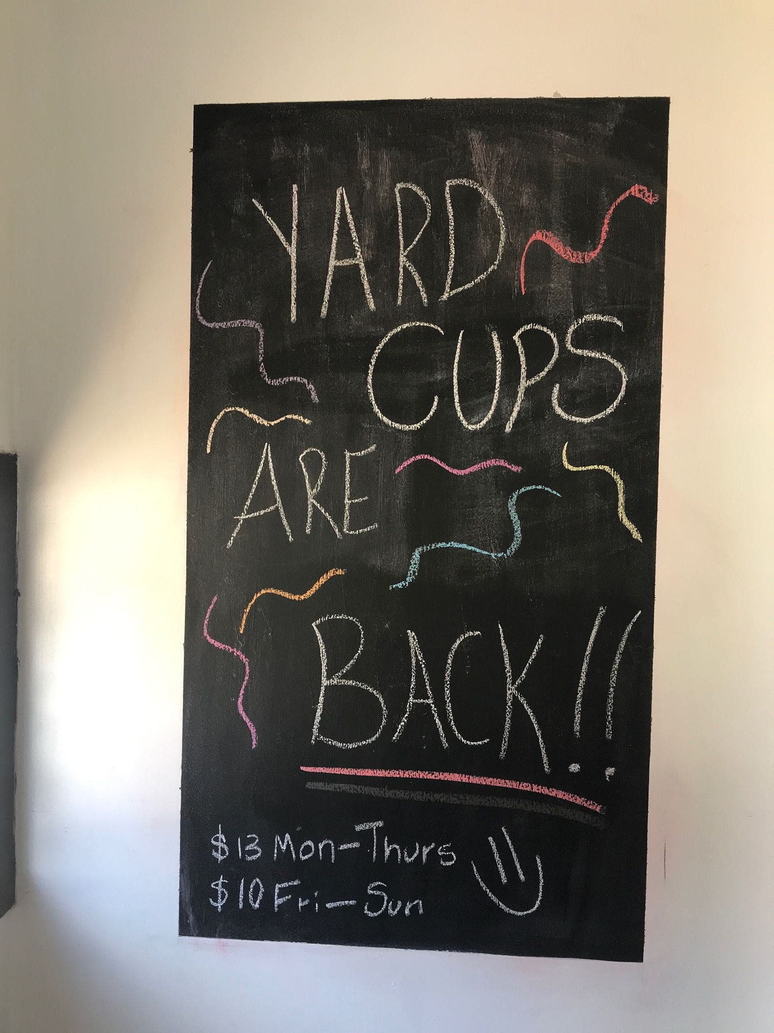 "They can order for carryout or dine-in," he added. "They can take their Yard Cups home."