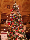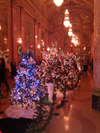 More than 60 trees and wreaths, each of which is being auctioned off, line the long corridor and lobby of the Rialto Square Theatre in Joliet.