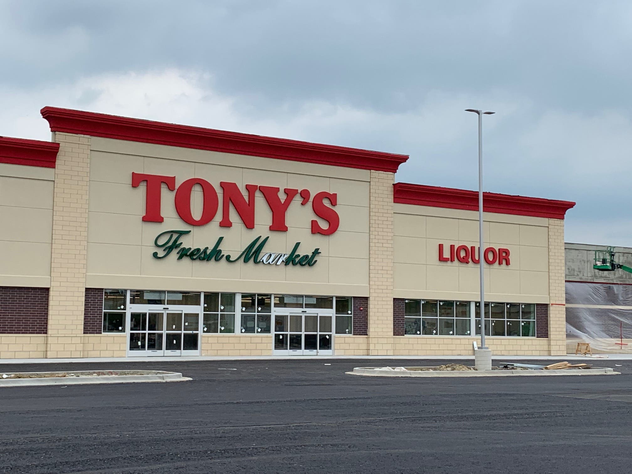 The giant Tony's Fresh Market sign is now on the building. Tony's is aiming to have its new supermarket open around the Fourth of July. A Planet Fitness health club will also be opening in the former Kmart building in the months ahead.