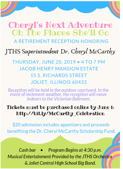 Since April, the District 204 PR staff has been urging the Joliet community to RSVP and pay $20 to attend a June 20 retirement banquet at the Jacob Henry Mansion to honor McCarthy.