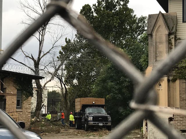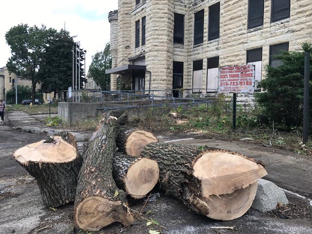JOLIET, IL - The city of Joliet, with the full support of the Illinois Department of Corrections, got to work bright and early Saturday morning cutting down overgrown trees, bushes and shrubbery around the old Joliet Prison. The empty prison along Collins Street has been a mecca for vandals, trespassers and arsonists over the past year. But Saturday's effort signals that a positive change may finally be in store for the world-famous prison property that dates back to 1858, a limestone fortress that is best known for its role in The Blues Brothers movie.