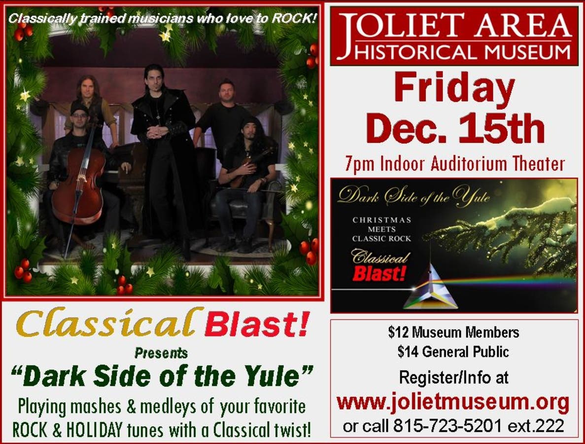 Classical Blast! band plays "The Dark Side of the Yule" at the Joliet Area Historical Museum on Friday, Dec. 15th at 7pm in the Museum's Indoor Auditorium Theater.