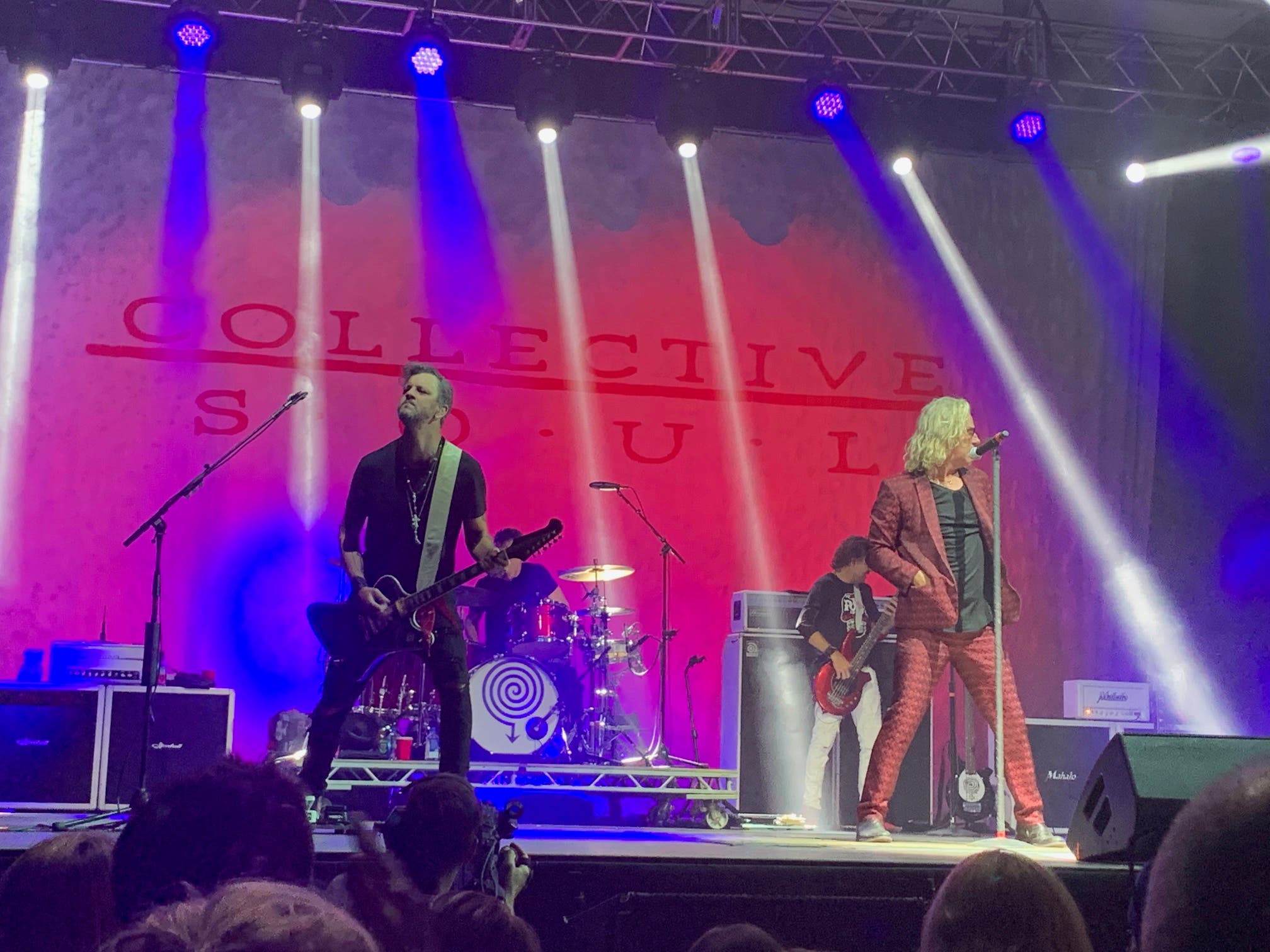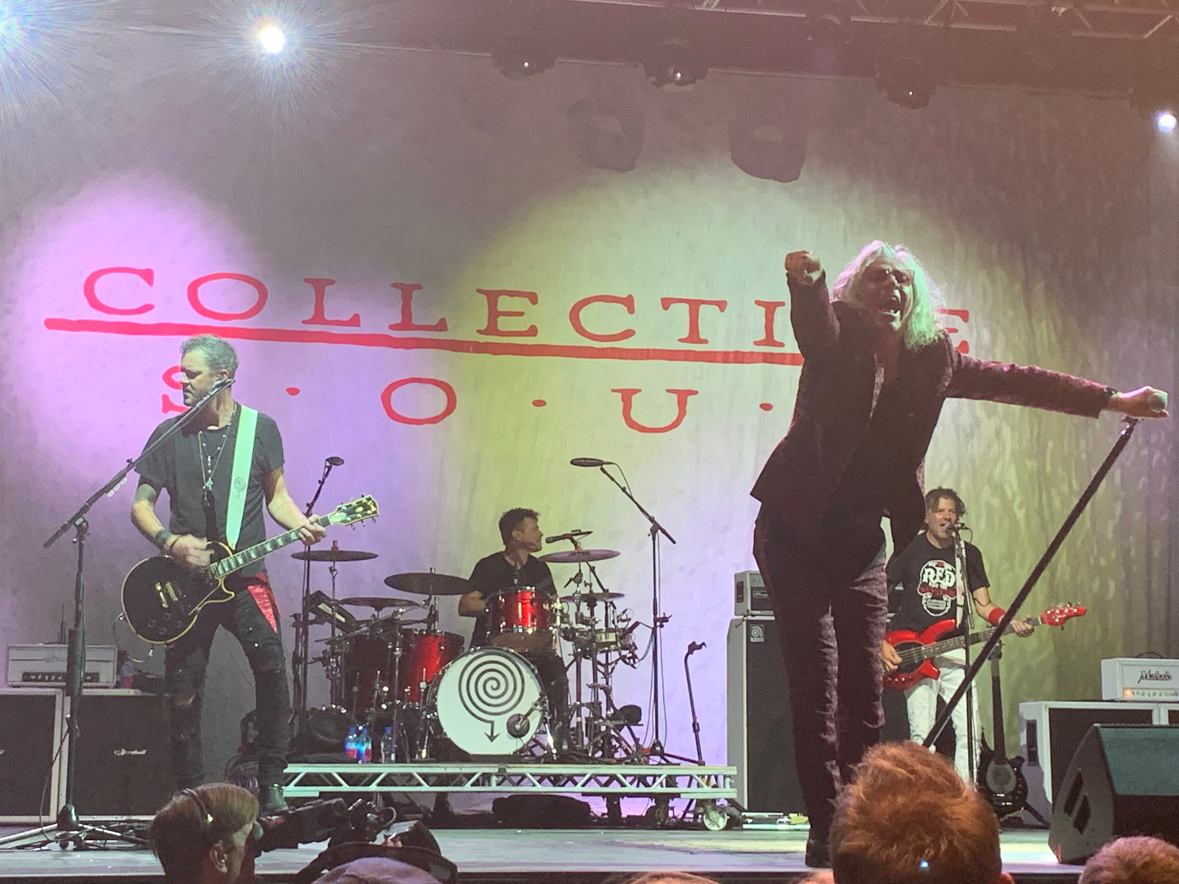 Collective Soul rocked the house. Practically everyone who gathered near the stage and around the V.I.P. section stayed for Collective Soul's entire performance, which lasted until 10:47 p.m.