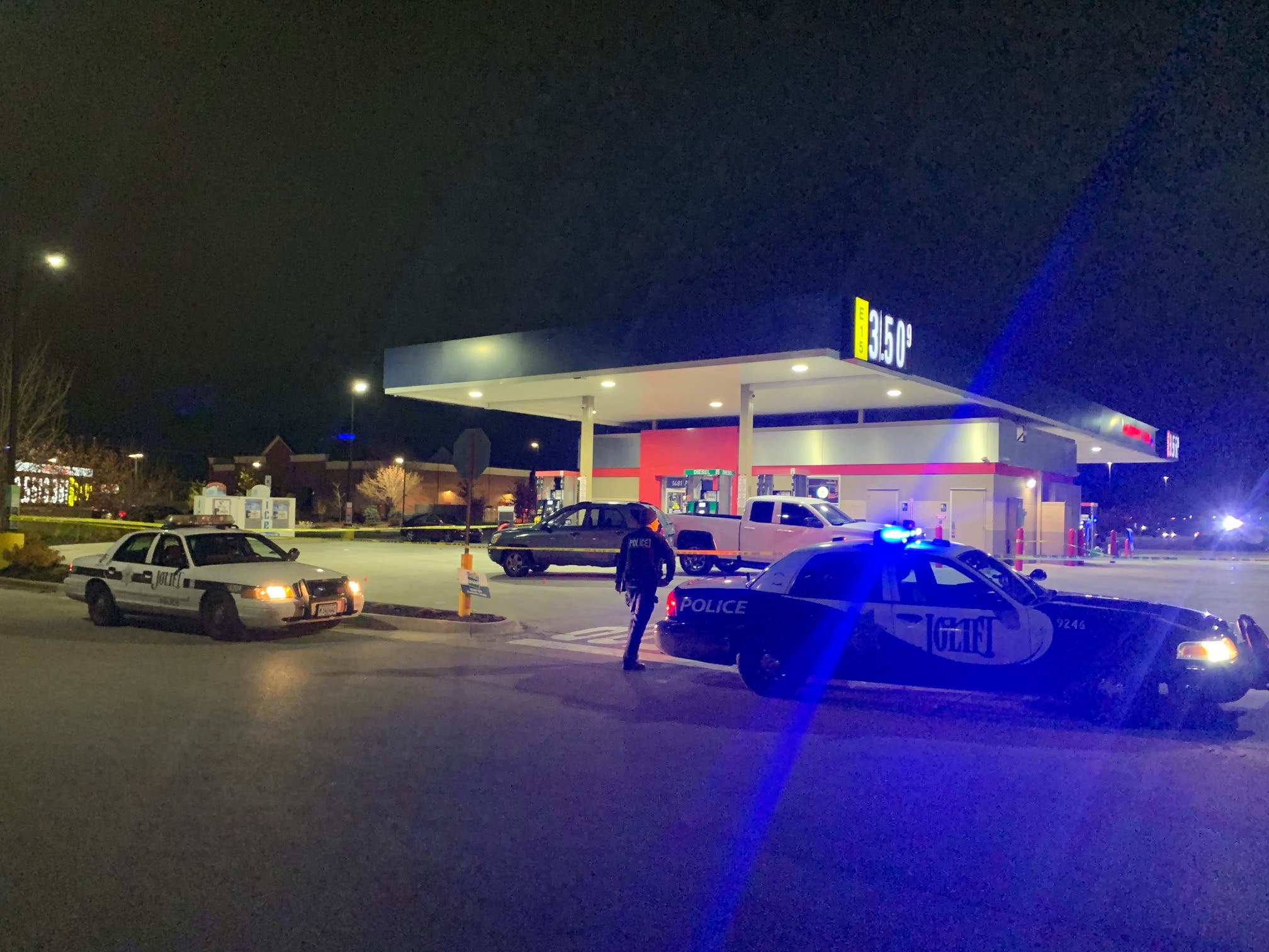 About a dozen Joliet police cars were at the crime scene Thursday evening at the Murphy's Express along the Route 59.
